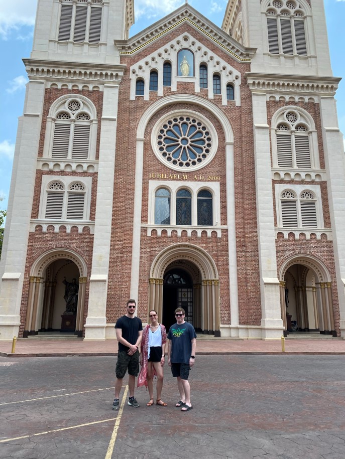 The students were challenged to eat some street food. The vendor told Asa it was chicken, but the tentacles raised some doubts.