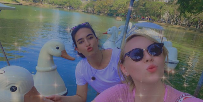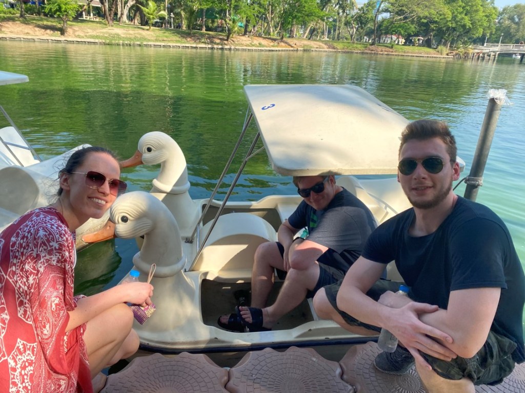 Riding a duck in Lumphini Park.